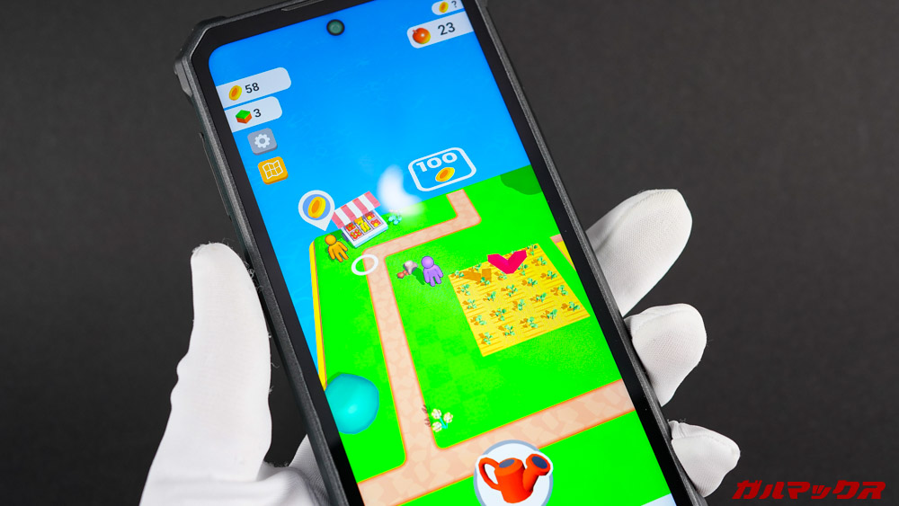▼ハイエンドスペックではないので3Dゲームは画質を落とす必要はありますが、縦持ちメインな軽いゲームなら不満なく扱えますぞ!ミニゲームタイプを色々遊んでる筆者からすれば十分すぎる性能で満足。↓