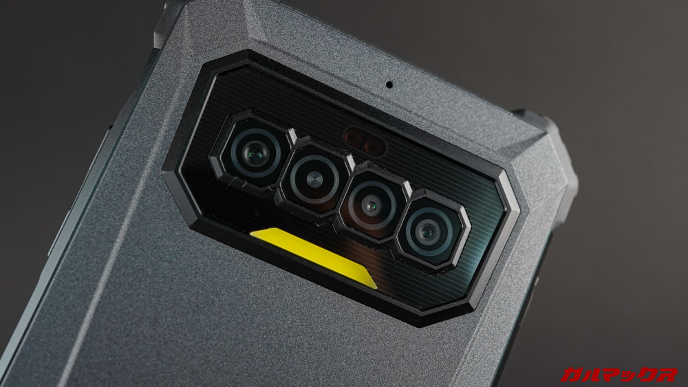 ▼まずiiiF150 R2022のカメラなんですが、クアッドカメラ…ではなくトリプルカメラ。左から2番めはダミーの様子。構成はメイン+マクロ+ナイトビジョンとなっており、超広角カメラが非搭載なのは残念。↓
