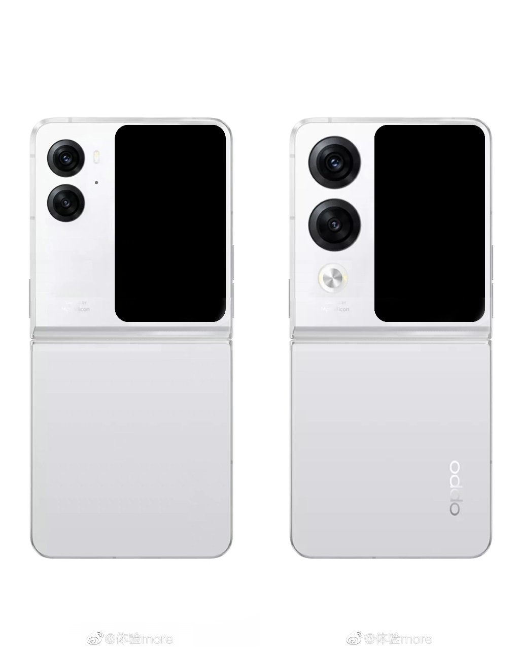 ▼中国のSNSサイトWeiboにて、OPPO Find N2 Flipのレンダリング画像が2枚リークされていました。画像を投稿した体验more氏によれば実際のデザインはカメラの小さい左側になるかもとのこと。↓