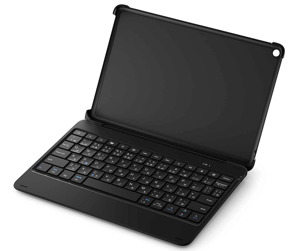 ▼アクセサリーが魅力的で、日本語キーボード付きカバーはFintieからMade for Amazon認定取得製品としてリリースされます。単体購入の場合は5,980円。↓