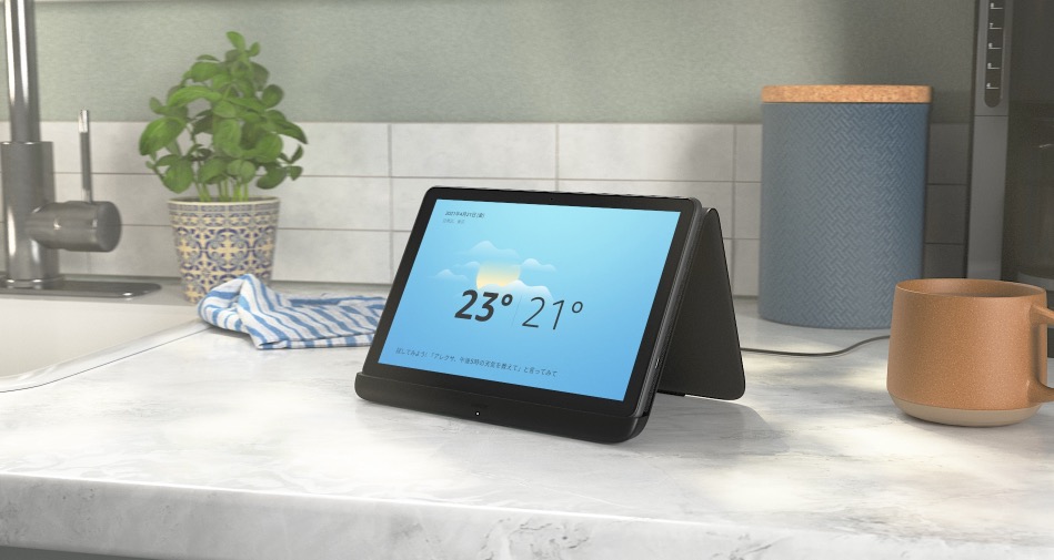 ▼専用のスタンドにセットするとワイヤレスで充電出来るだけでなく、セットすると自動でAlexa搭載のスマートディスプレイとして起動するようになってるみたい。↓