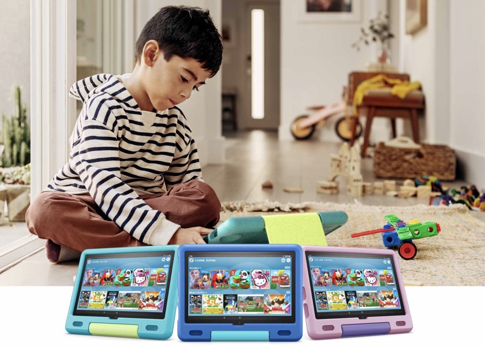 子供向けのデバイスとして人気の高いFire HD 10 キッズモデルも新モデルが登場しました。前モデル同様に落下などから端末を守ってくれるキッズカバー付き。