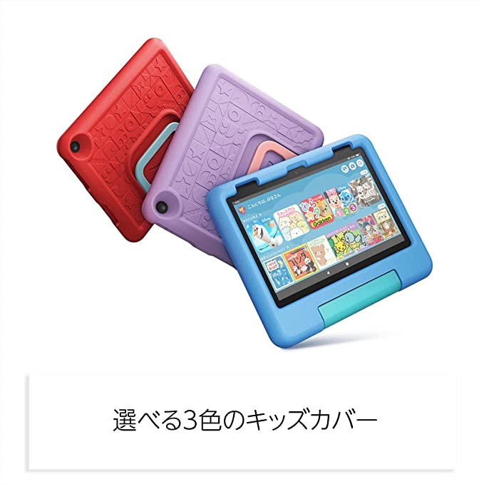 ▼Fire HD 8(2022)をベースとしたキッズモデルも用意されており、キッズモデルでは子供向けのコンテンツも内蔵されているぞ!またスタンド付きケースも同梱されており、衝撃にも強く落としても壊れにくくなっている。↓