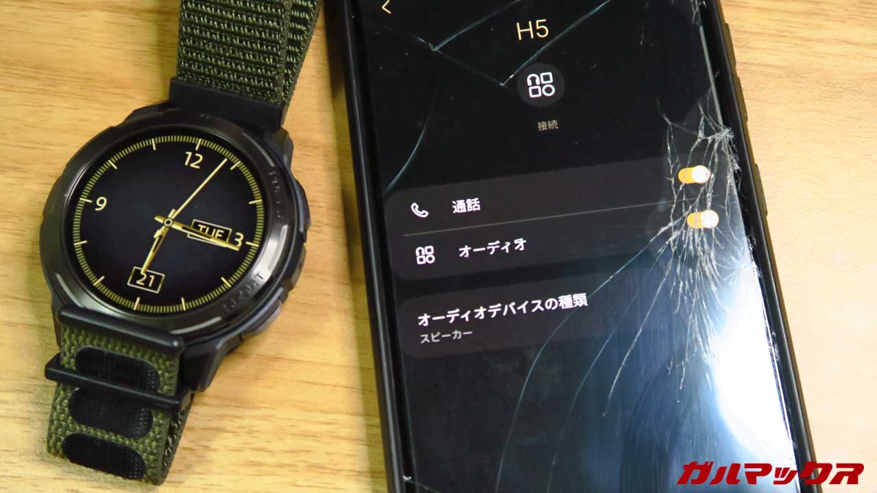とはいえ音質はウォッチ相応なので音楽視聴向けではありません。スマホ側でのデバイス出力をうまく切り替えるなど工夫は必要。