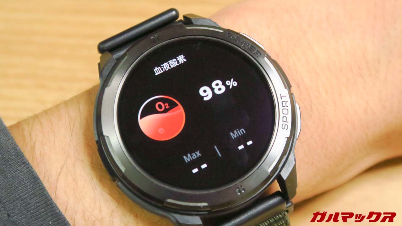 ▼健康測定も不満なし。血中酸素の測定も対応し心拍数の常時測定も可能。ただしストレスモニタリングは非対応でした。↓