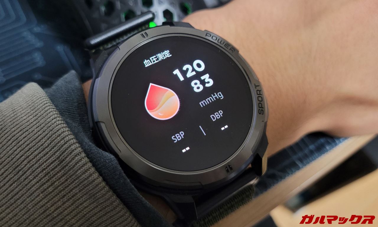 ▼なんとも珍しいことに血圧測定にも対応。これ結構対応してるモデルって無いもんで、そういう意味でも特色の1つといえます。精度は本物のソレを持ってないんでどれほどかはわからんけど‥↓