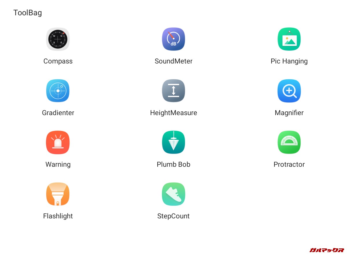 ▼一応、ツールボックスアプリがプリインストールされていて、いろんなツールは使えるようになってます。↓
