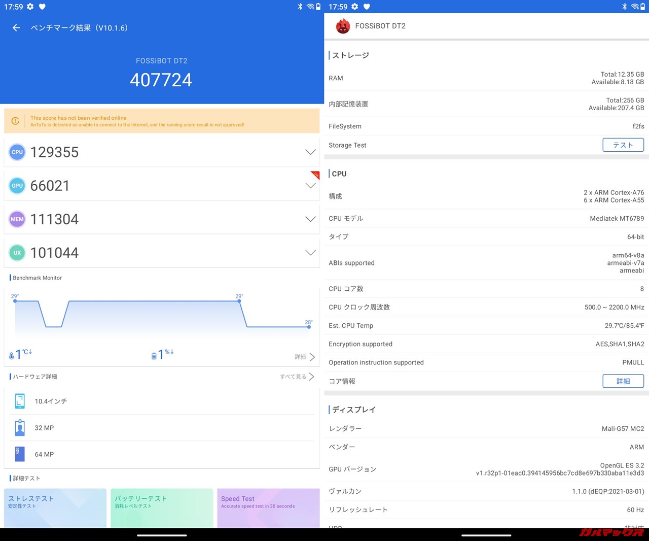 FOSSiBOT DT2だからという訳ではなく、Helio G99自体のゲーム性能が高くないので、画質と滑らかさを両立するのが難しいっす。