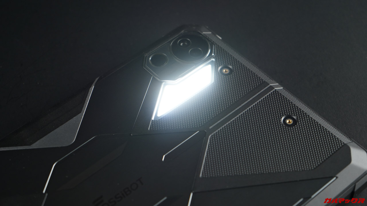 ▼FOSSiBOT DT2は背面に大型のライトを搭載!この黄色い部分が全部ライト。もはやスマホのフラッシュとは比較にならんほどデカい!↓