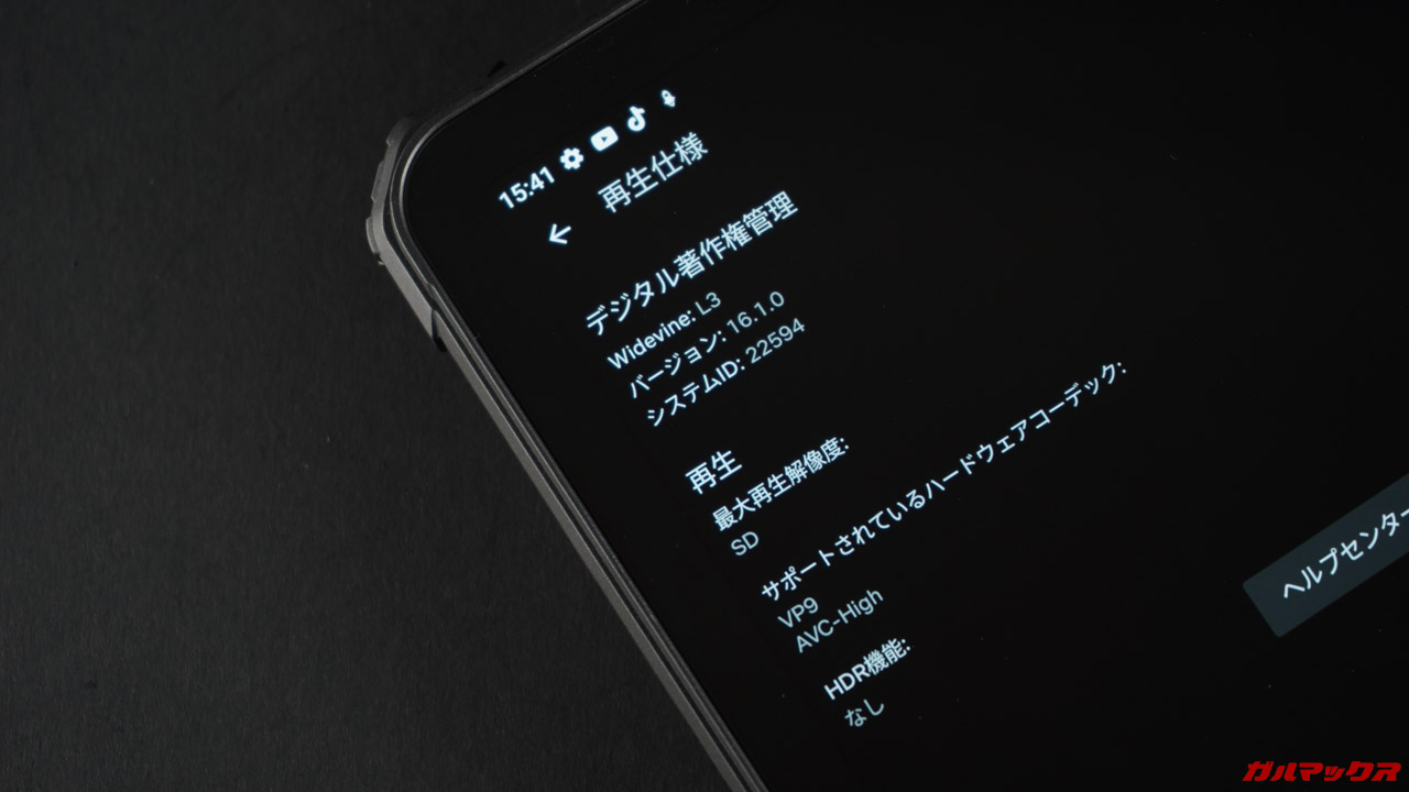 なので、再生時はSD画質(FHD>HD>SD)となるので、再生時の精細さがイマイチ。最近は安価なタブレットでもWidevine L1に対応している製品が多くなってきただけに残念。