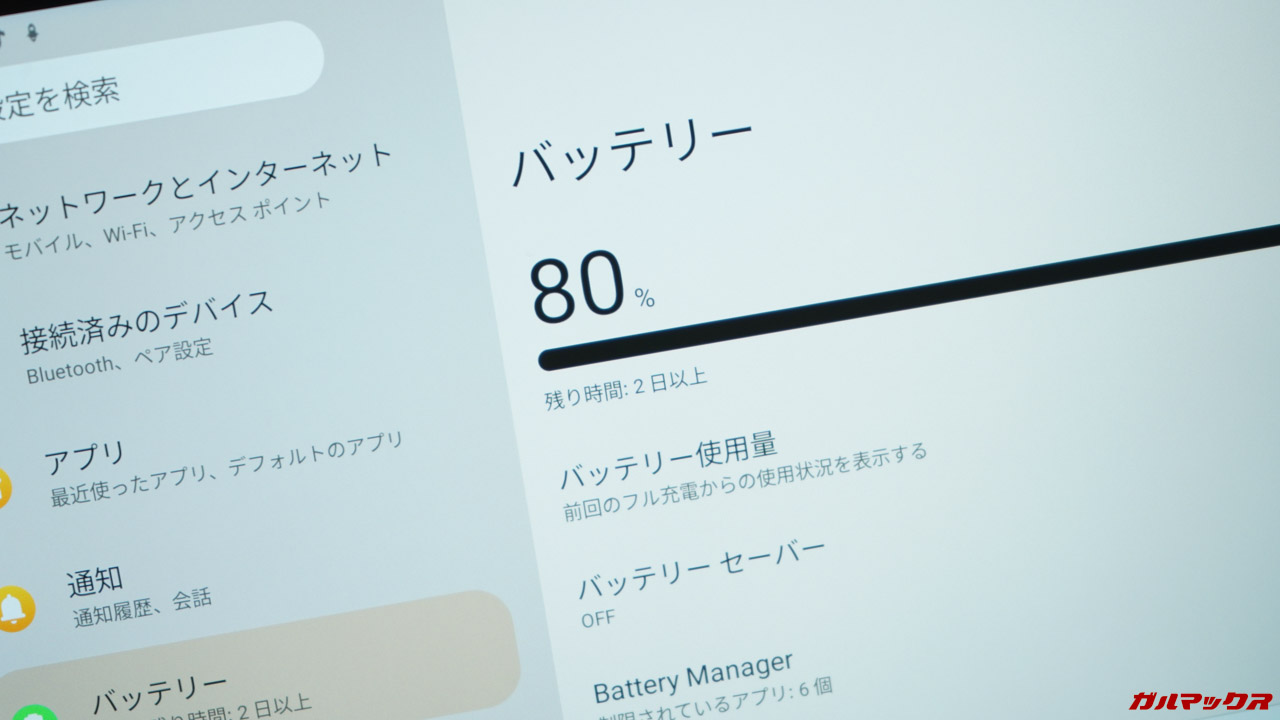 バッテリー持ちは文句なし!なんてったって22,000mAhも搭載してますから…!スマホだと最近では大体5,000mAhくらいなので4台分くらいの電池が詰め込まれてます。