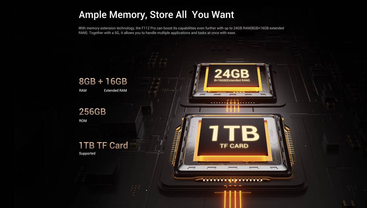 ▼なおメモリは8GBでストレージは256GB。規格は記載されてないので不明。microSDにも対応しているので最大1TBの増設もOK。効果があるのか無いのか怪しい拡張メモリ機能にも対応しているぞ。↓