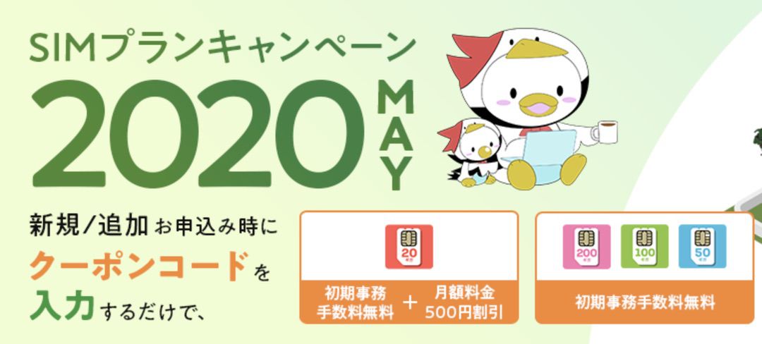 キャンペーンは「SIMプランキャンペーン2020MAY」という名称で2020年5月6日(水)0:00〜2020年5月31日(日)までの期間限定で開催するようですね。