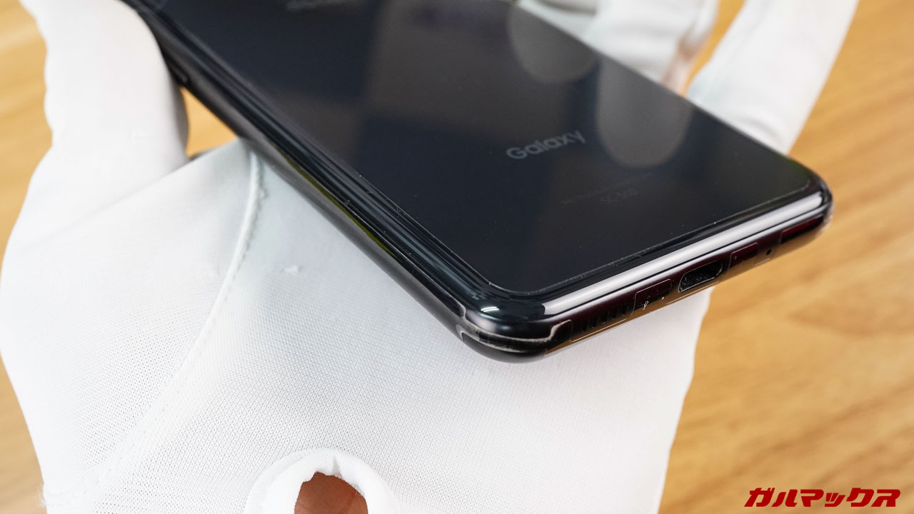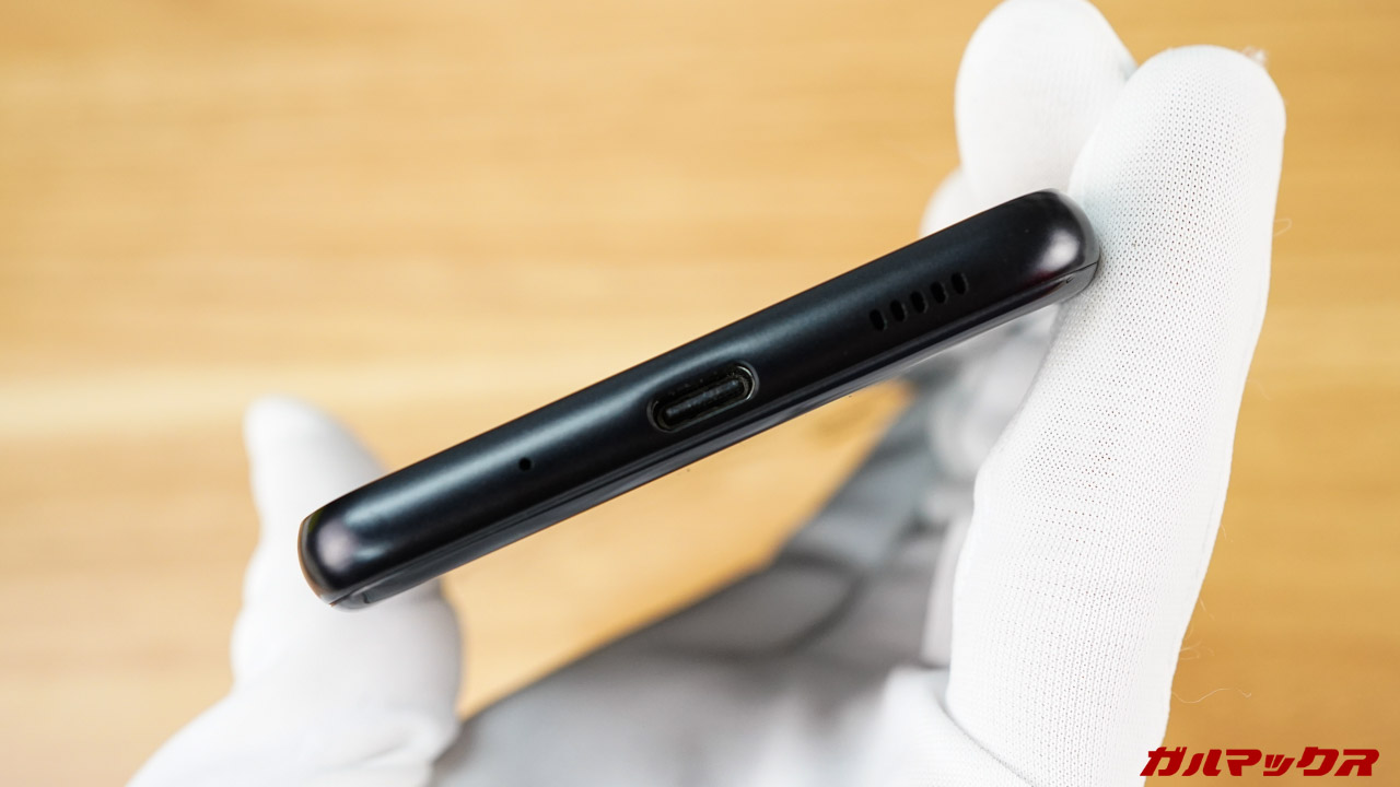 A20シリーズ恒例の部分。Galaxy A22 5G SC-56Bには指紋センサーがありません。よく指紋センサーを使ってた筆者にとってはかなり不便に感じました。ただ、安価かつエントリーモデルの立ち位置なのでご愛嬌…と割り切れます。