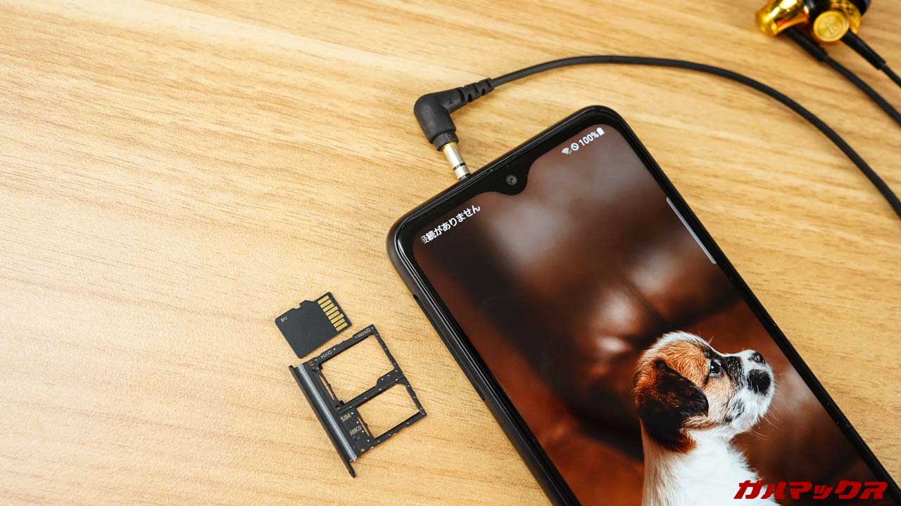 ▼さらにイヤホンジャック、MicroSDスロットがあるのもイイ!最近ではどんどん削られている部分ですが、Galaxy A22 5G SC-56Bはどちらも完備!筆者の持ってる256GBのSDカードも使えていました。↓