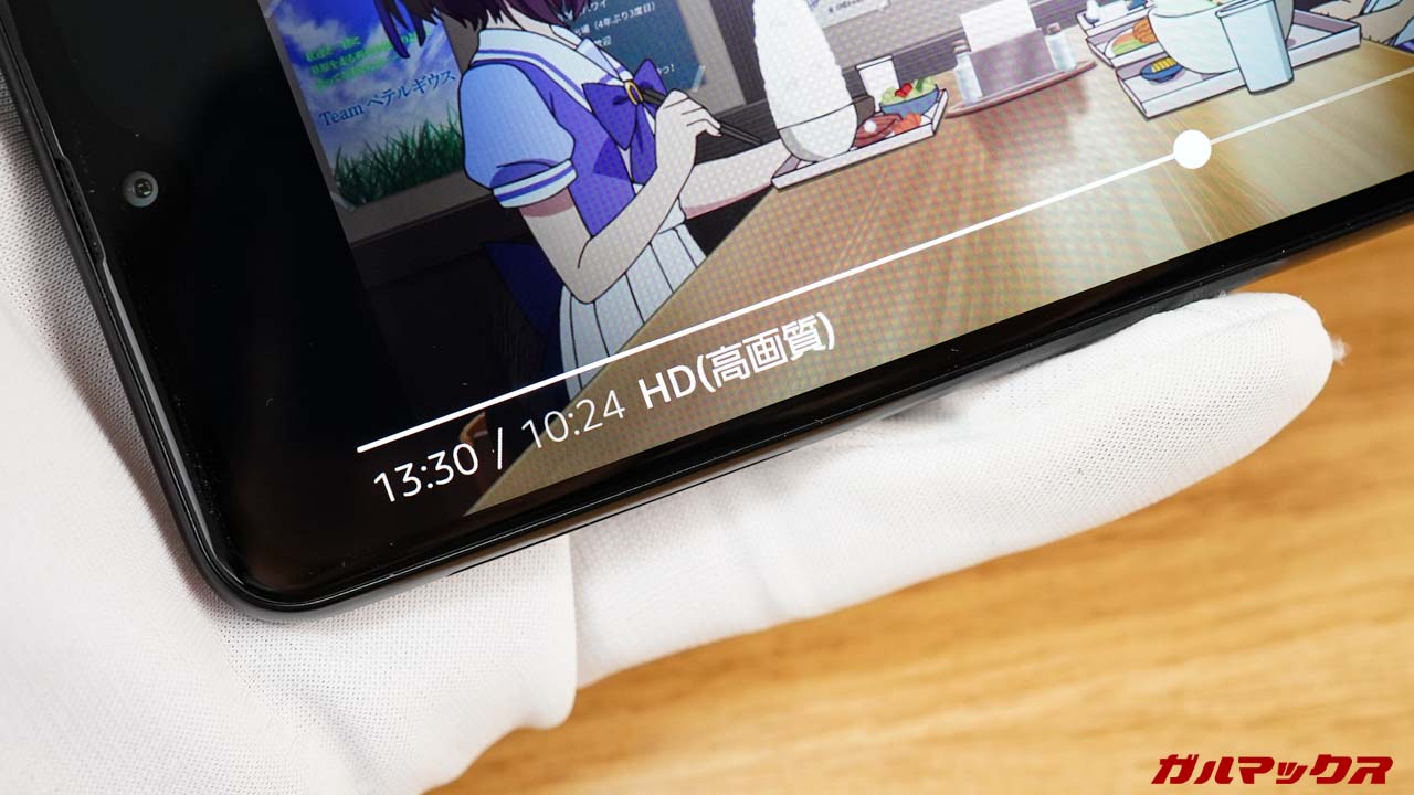 ▼その一方で、Netflixやプライムビデオといった映画等の著作権コンテンツ(DRM)が高画質で見られるのは利点。解像度自体はHD+クラスで高くはありませんが、SD画質で見るよりはキレイに感じます!↓