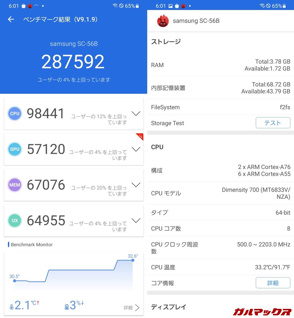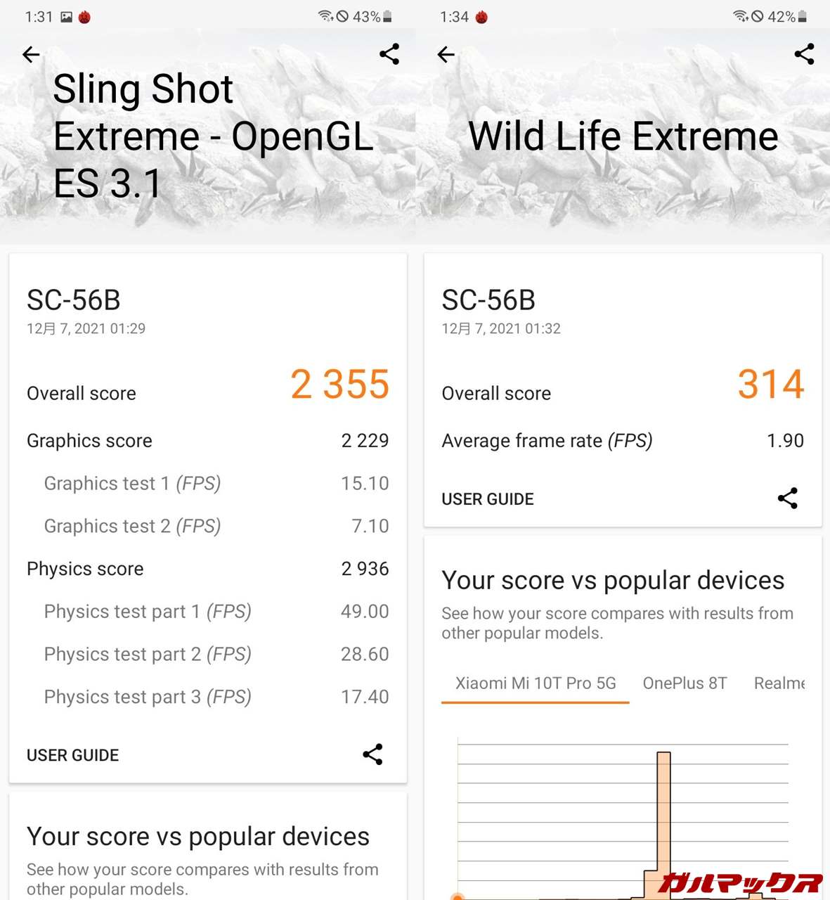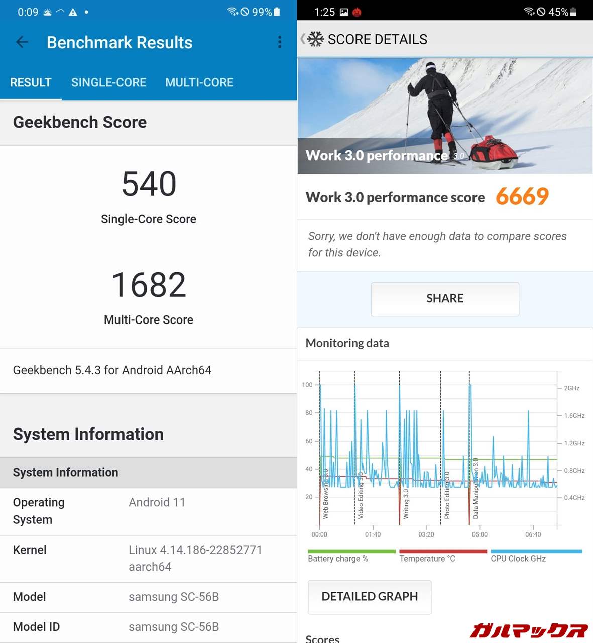 Galaxy A22 5G SC-56Bの実機ベンチマーク結果