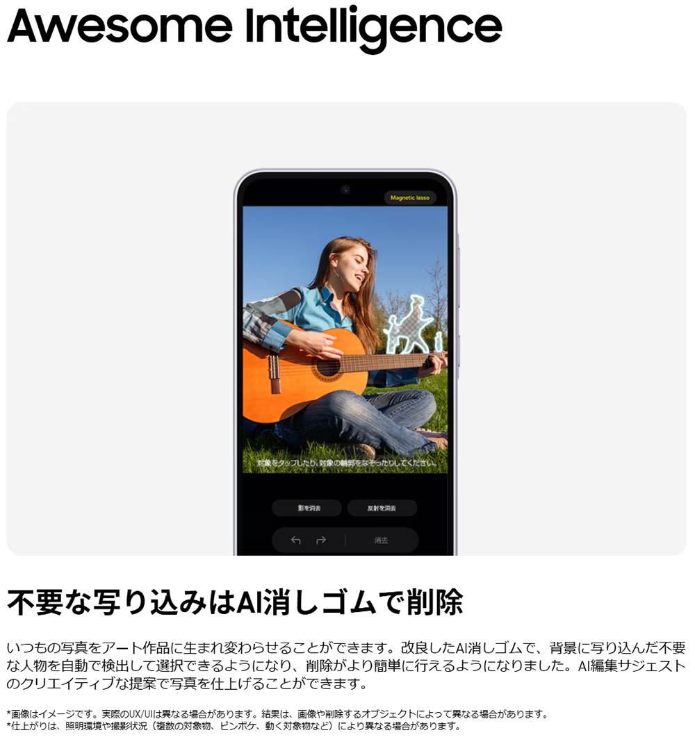 ▼AI消しゴムやAI編集サジェストなどのAI機能も搭載。↓