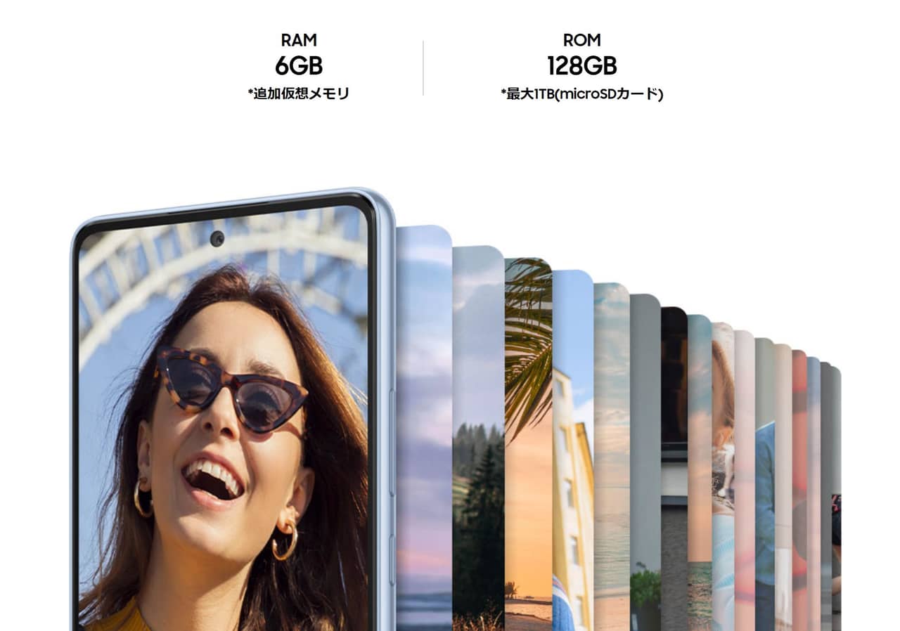 ▼メモリ(RAM)は6GB、保存容量(ROM)は128GBと大容量!さらにメモリの拡張にも対応しており、アプリ起動時の安定性も底上げできるようになっていますよ!↓