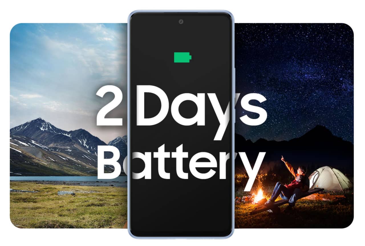 ▼バッテリーは同期のGalaxy M23 5Gと同じく大容量で、なんと5,000mAhも確保しているのがポイント!最長2日も使えると銘打っており、かなり電池持ちの良さに自信があるようですな(`・ω・´)。急速充電も25Wに対応しており充電も早そう!↓