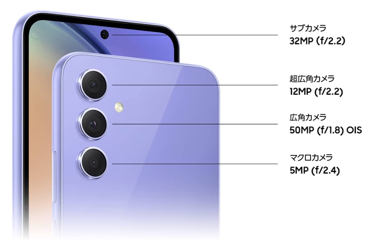 Galaxy A54 5G 日本版のカメラ