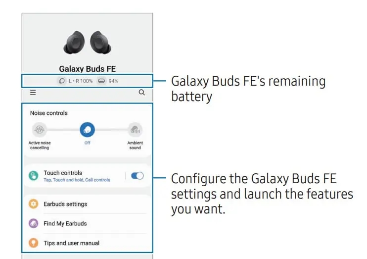 ▼さらに興味深いことにこのGalaxy Buds FE、ノイズキャンセリングと外音取り込み機能もあるみたいで、アプリからモードを切り替えできるのが確認できます。↓