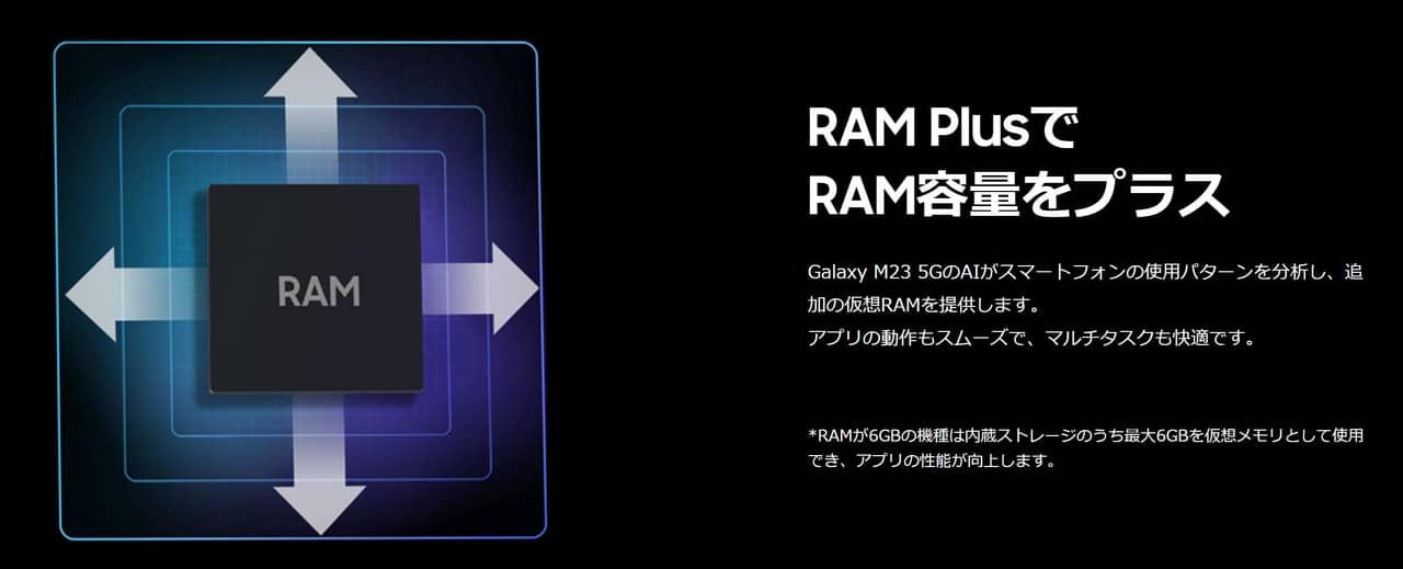 ▼あと、ストレージをメモリとして転換することで安定性を底上げするメモリ拡張機能も対応しています!まさかこのクラスのモデルにも対応させてくるとは思わんかった。↓