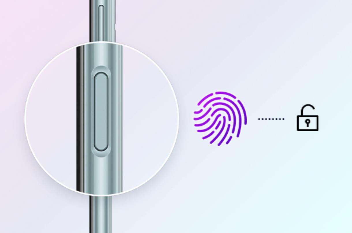 ▼指紋センサーは電源キーと一体型の側面方式です!押すだけでロック解除が可能なしくみ。右手だったら持った時に自然な位置で認証できるのがナイス!左手メインで使う場合は工夫はいりそうですが。↓