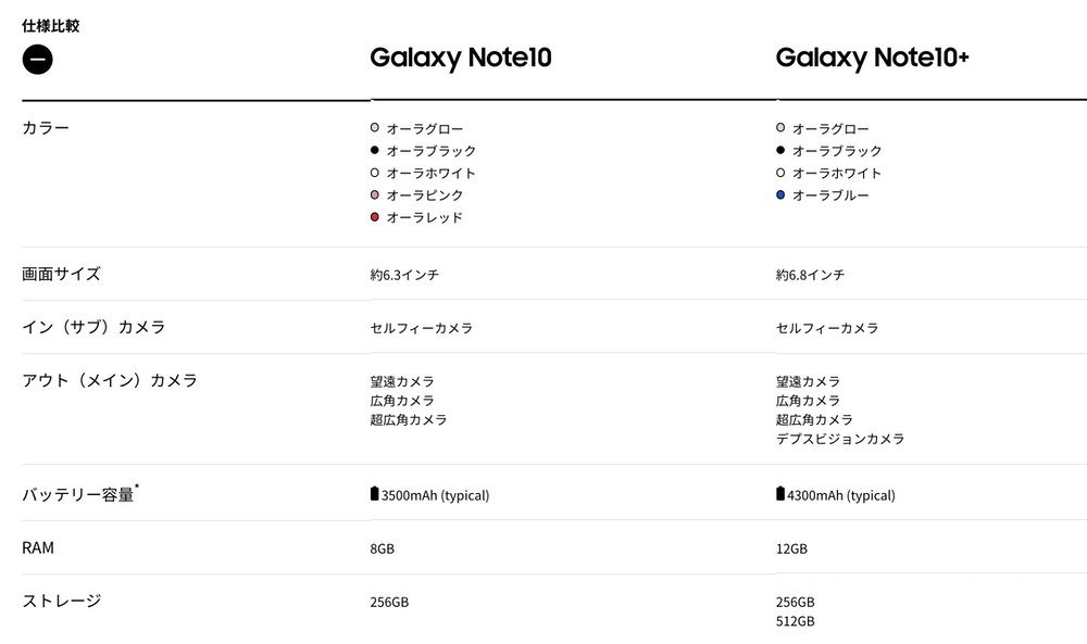 Galaxy Note 10/10+の違い