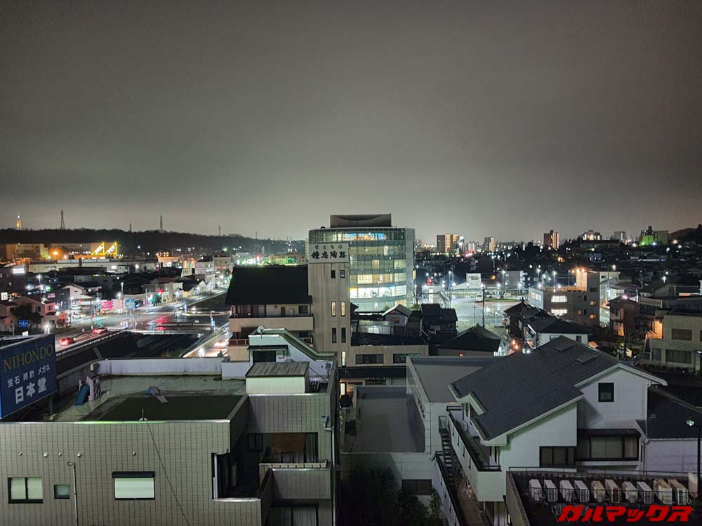 これらのナイトモードですが、通常カメラ以外に超広角カメラも対応してます。広範囲の夜景を撮影する時に超広角でもナイトモードが使えるのは利点ですが、残念がら望遠カメラは非対応でナイトモード中は望遠に切り替えることが出来なかったので情報共有しておきます。