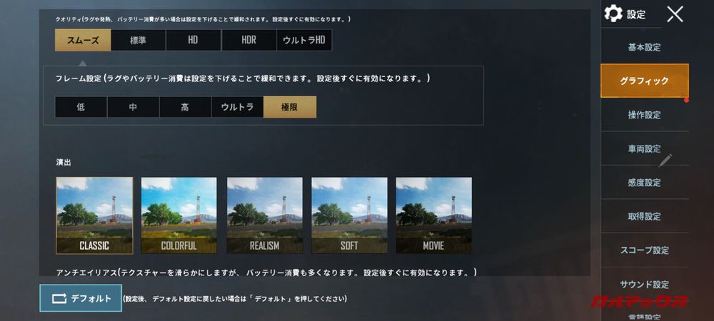 ▼重量級ゲームの代表格であるPUBG Mobile。このゲームは高いパフォーマンスを有するモデルしか開放されない「極限」という設定があるのですが、Galaxy Note 10 Liteはご覧の通り。プロゲーマーも好むスムーズ+極限の設定が可能です。↓