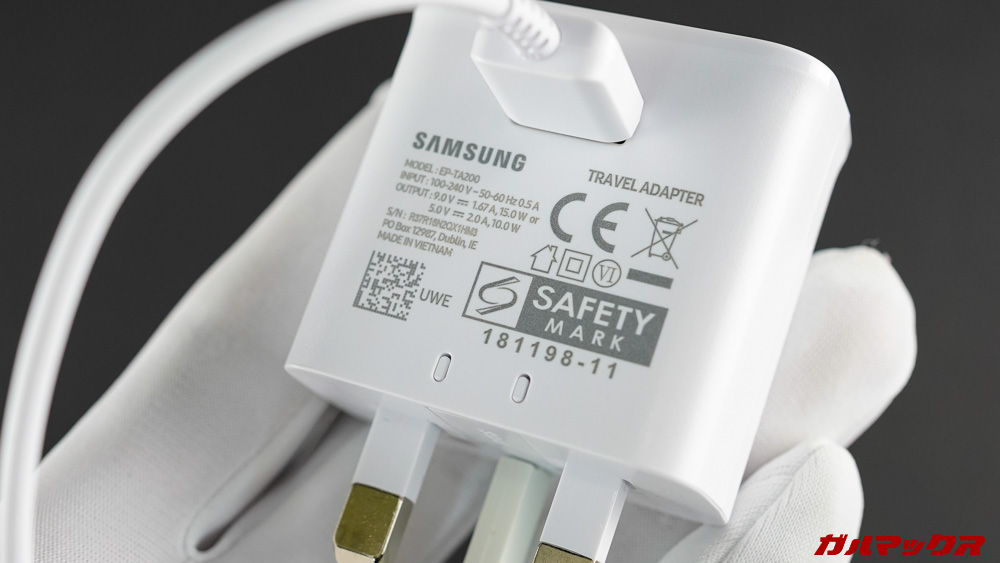 ▼付属の充電器は最大15Wの急速充電タイプ。UCBケーブルは真横に挿す形状っす。なおGalaxy S20 FE自体は最大25Wの急速充電に対応しているんですが、15Wでも十分早ぇんで別にいいや!ってなってます(˙ω .)↓