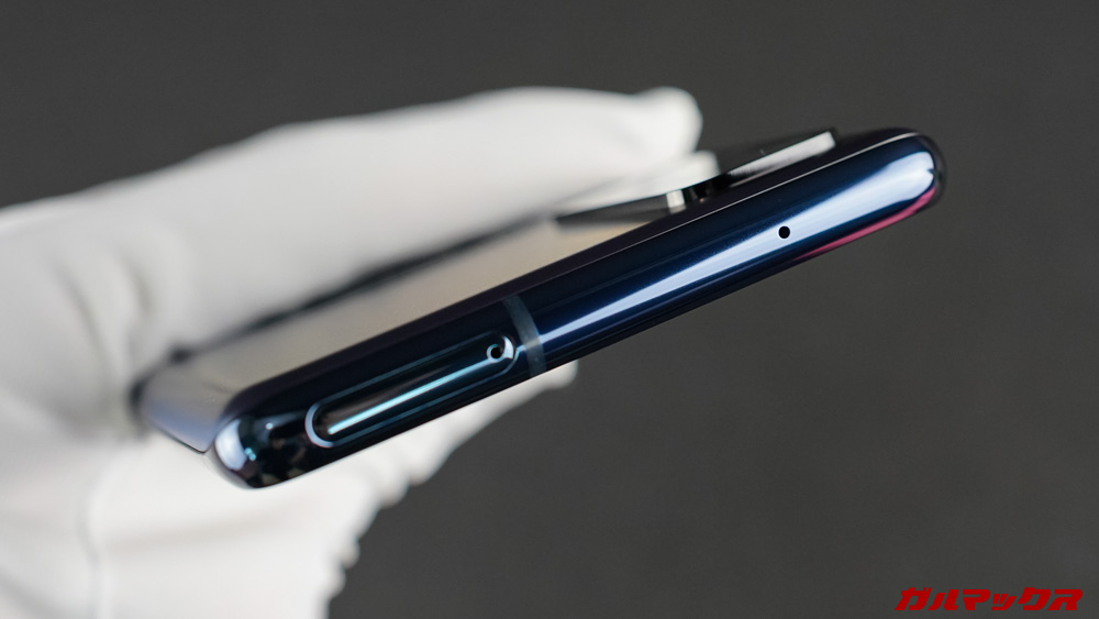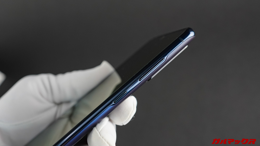 ▼ボタン類は右側、SIMスロットは上部、充電端子は下部といった標準的な配置スタイル。↓