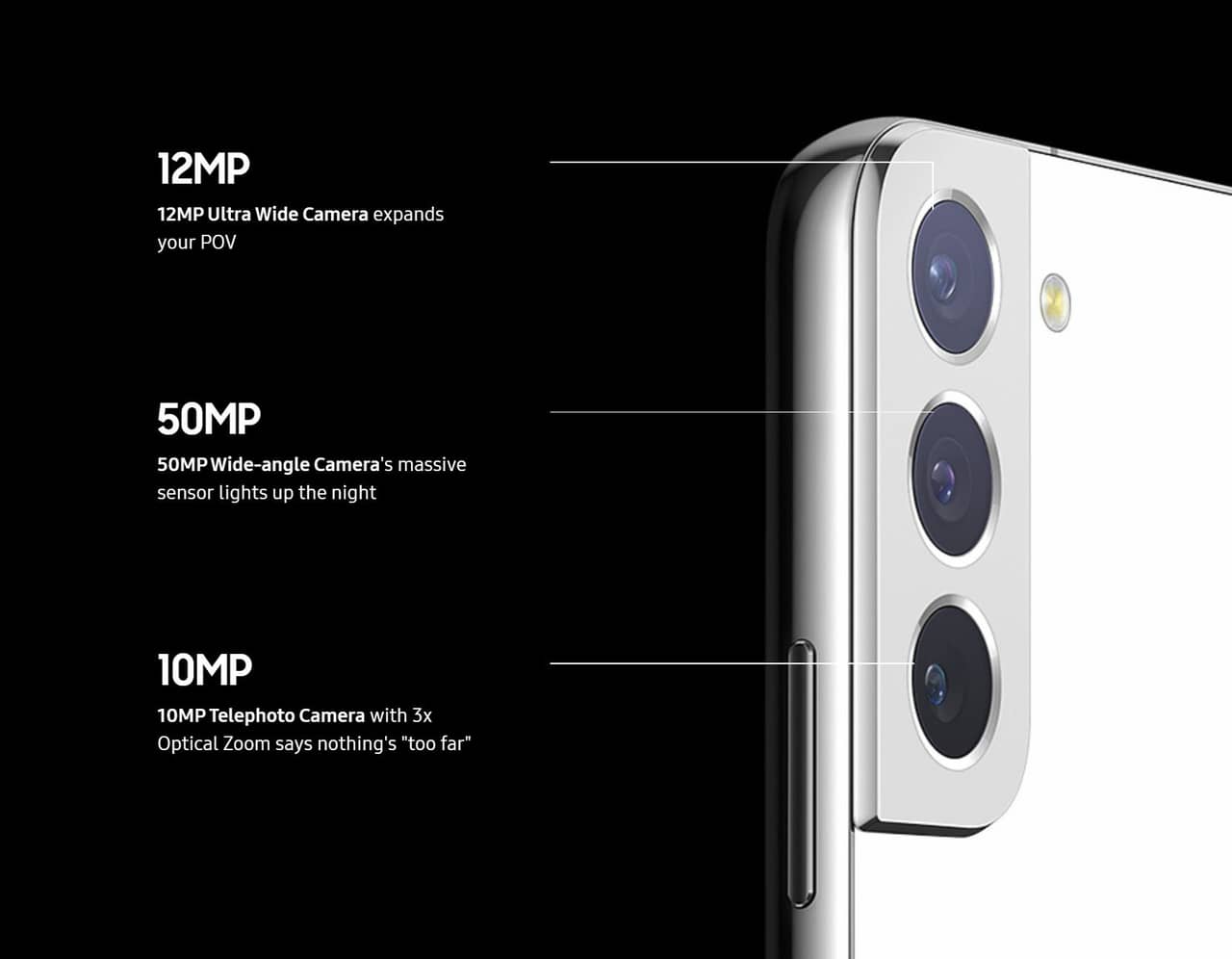 ▼カメラのスペックもアップ!構成は5,000万画素メイン+1,200万画素超広角+1,000万画素望遠となっており、特にこれまでのGalaxy Sシリーズの中ではメインカメラの画素数が大幅に上がっています!↓