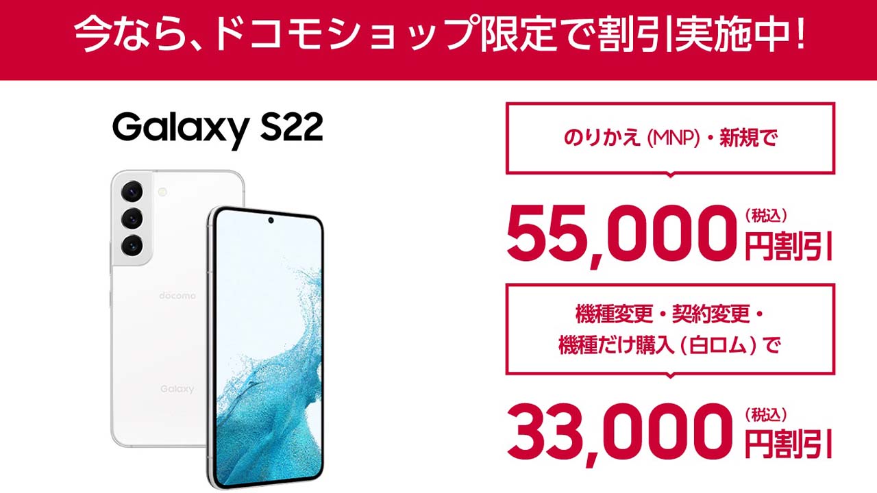 ドコモショップ(実店舗)でGalaxy S22 SC-51Cが最大5.5万円値引き開始!