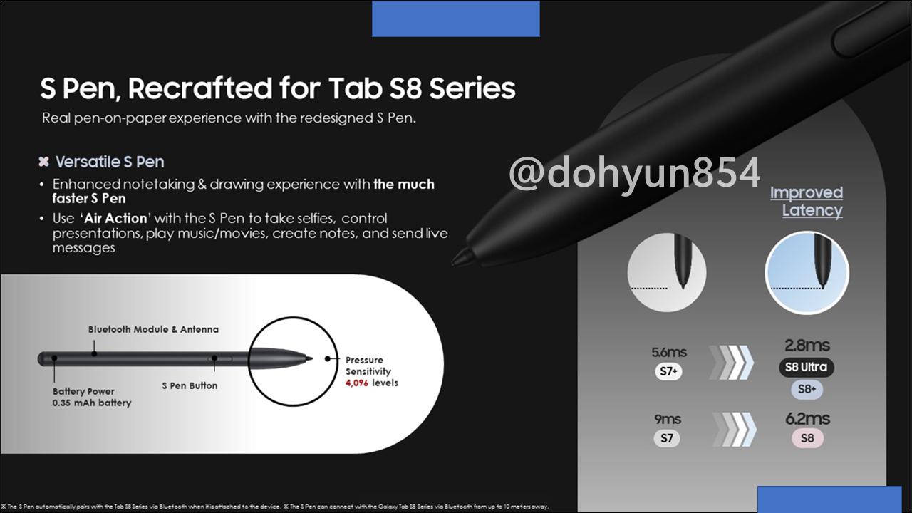 ▼いずれのモデルもSペンに対応!レイテンシ(入力遅延)はGalaxy Tab S8が6.2ms、Galaxy Tab S8+とGalaxy Tab S8 Ultraがわずか2.8msとなっており遅延を抑えている模様!より高度かつ繊細な操作もいけそうですね。液タブとしても使えるんじゃないだろうか?↓