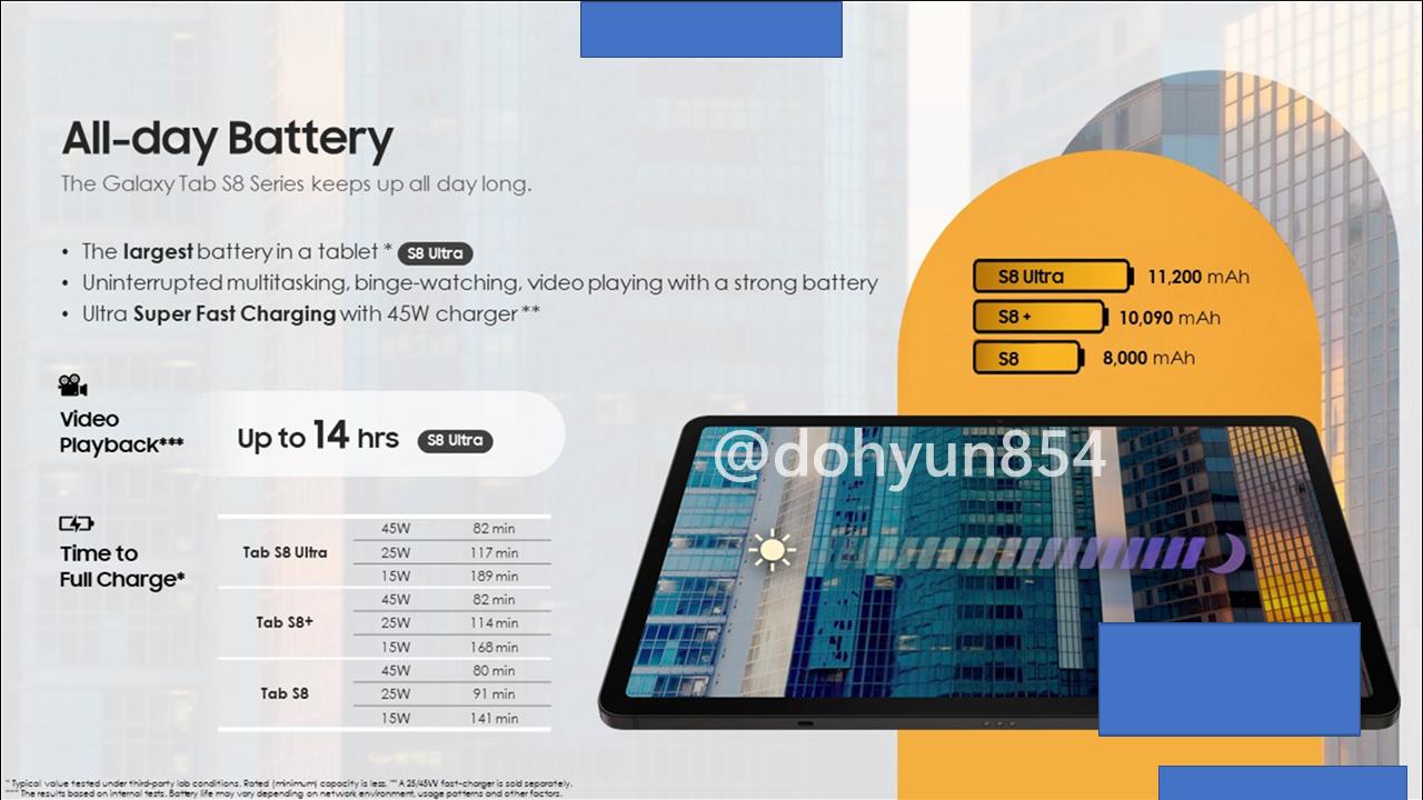 SAMSUNG謹製のハイエンドタブレットとして登場が期待されているGalaxy Tab S8シリーズですが、そのプレゼンスライドおよびプロモーション動画が流出したとのこと!スペックと価格がリークしていますよ!