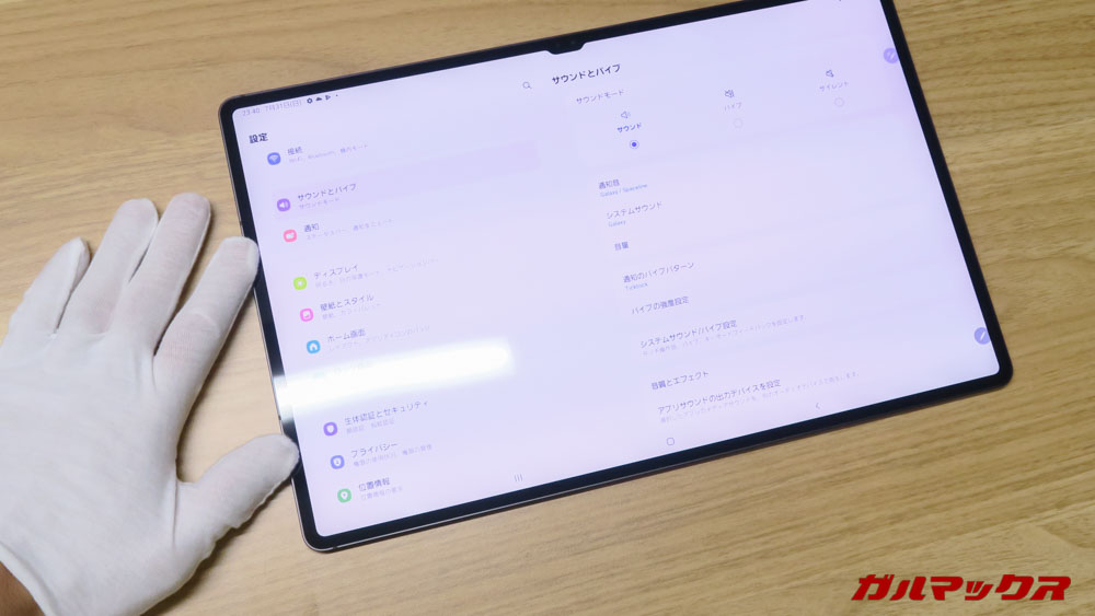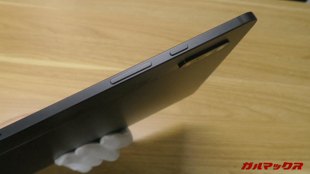 ▼Galaxy Tab S8 Ultraは先代S7+同様に画面内蔵指紋センサーを搭載。充電端子側に配置されてて、大体位置はベゼルから指1本ぶんぐらいの場所だから結構扱いやすかった。↓