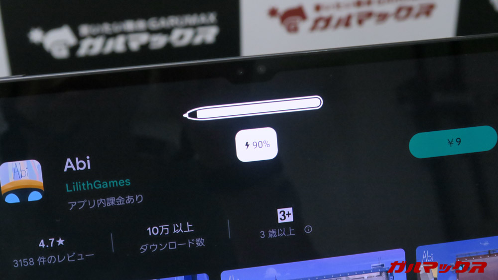 ▼Sペンは背面のマグネットにくっつけることで充電できる。ペン自体は筆者の使い方だと半日ほどの電池持ちだった。充電は結構早く、4~50分ほどで満充電できるペース。↓