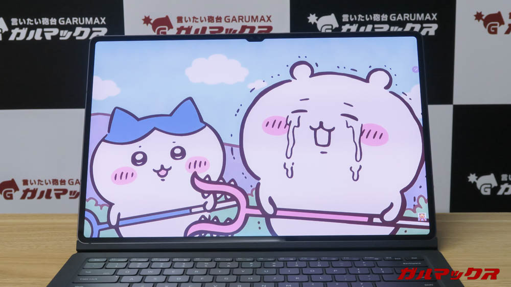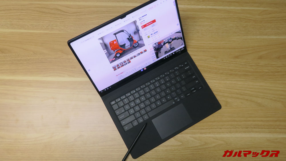 ▼14インチサイズだけあってディスプレイの視認性はすごく良い。解像度も高く有機ELで動画視聴もバッチリ。ノッチはあるんだけど、デカい画面サイズに対してかなり小さいから気になることはなかった。↓