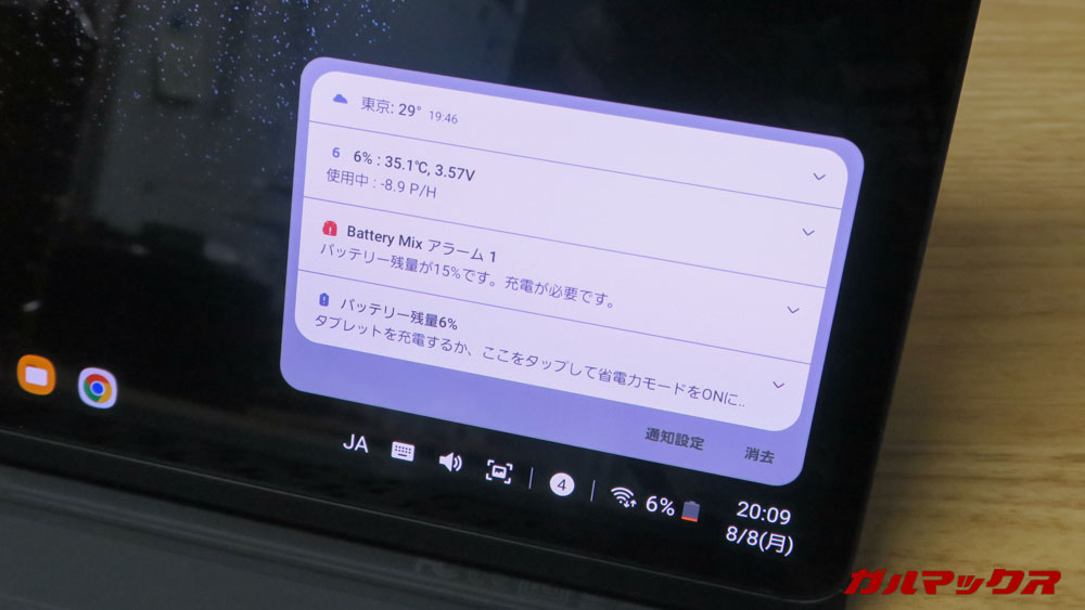 電池持ちはズバリ微妙である。普通に使っていても半日ぐらいで低残量のお知らせが飛んできた。1万超えのバッテリー容量でもここまで食うんだな。