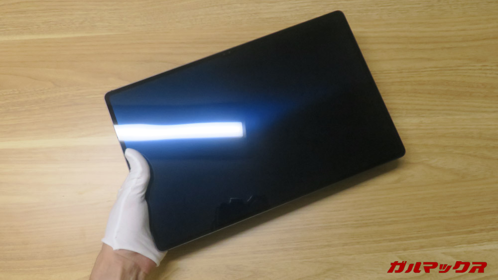 ▼長辺が326.4mm、短辺が208.6mmという、Androidタブレットでも規格外な巨大さは、やはり圧巻の一言。手に取るとタブレットということさえ忘れてしまう…これはもうタブレットPCレベルだな!↓
