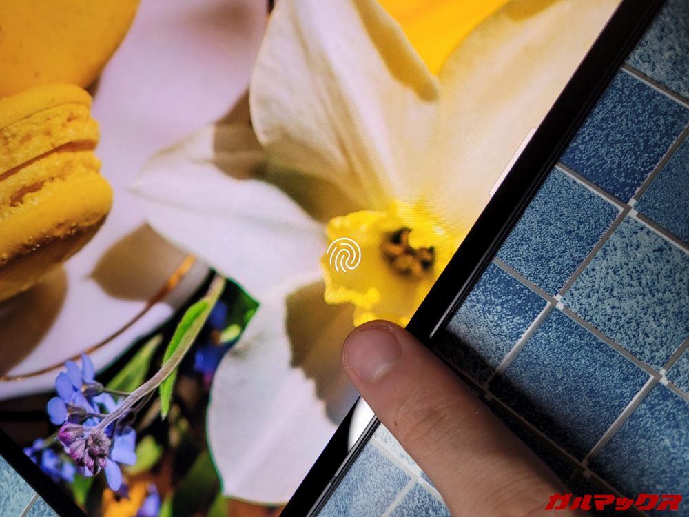 画面内蔵指紋センサーを搭載。顔認証はちょっとクセあり