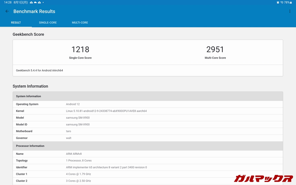 Galaxy Tab S8 UltraはハイエンドSoC「Snapdragon 8 Gen 1」を搭載!言わずとしれた超ハイエンドSoCである。Androidスマホやタブレットで搭載されるSoCでもトップクラスの処理性能を持つチップセットで、当然のごとく動作はウルトラ快適。