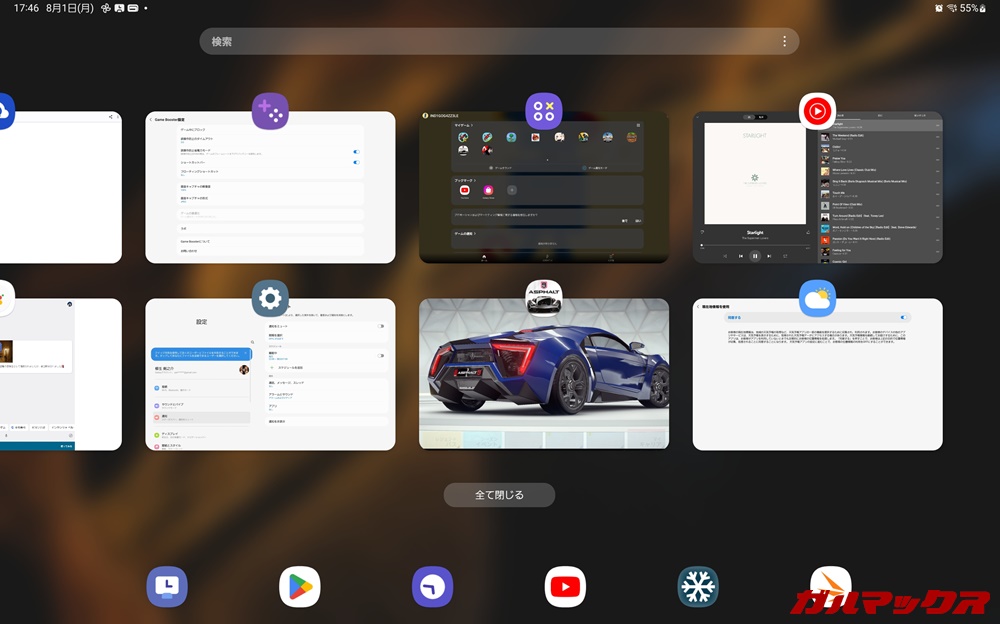 ▼アプリ履歴画面も大画面向けに最適化されておりタイル状に並ぶ配置なので見やすく、こちらも非常に使いやすかった。↓