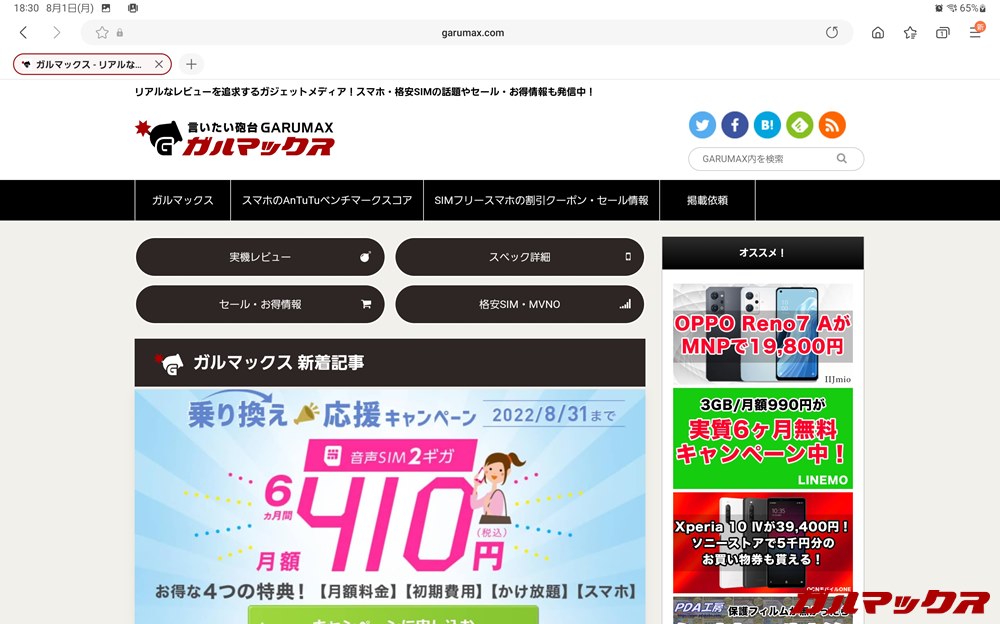 ▼WEBページもPC表示にすることでまんまPCな見た目に。やべぇ、めっちゃくちゃ扱いやすい。120Hz表示も対応しておりスクロールも超ぬるぬる。これを快適といわずしてなんというのだろうか。↓