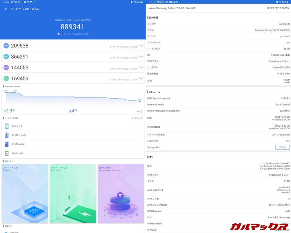 Galaxy Tab S8 Ultraのスペック、ベンチマーク、検証結果まとめ!