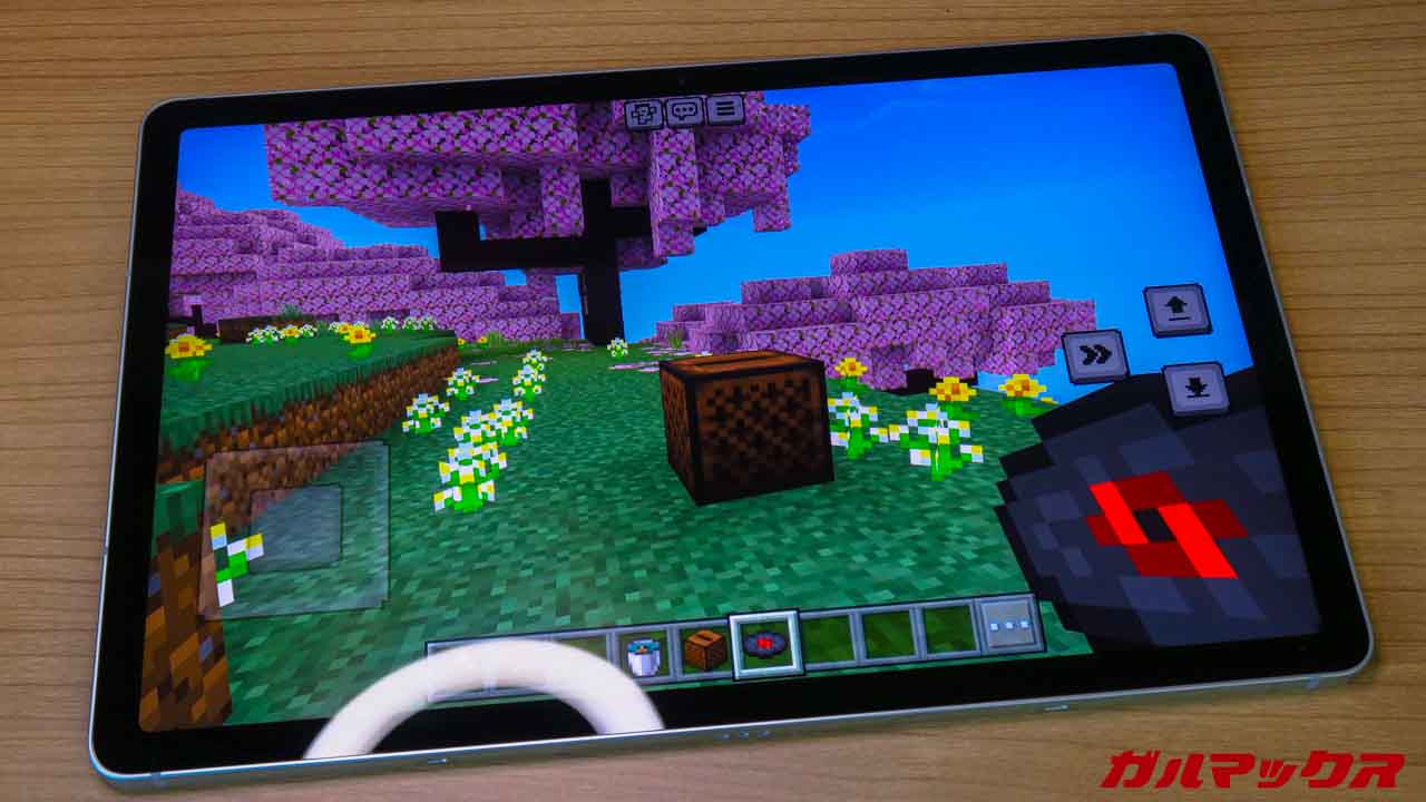 ▼Minecraftはデフォルト推奨チャンク10、最大18チャンクまでの表示に対応していました。Galaxy Tab A9+と同じくデフォ設定なら難なく動きますがそれを超えるとカクつきと発熱がかなり気になります。↓