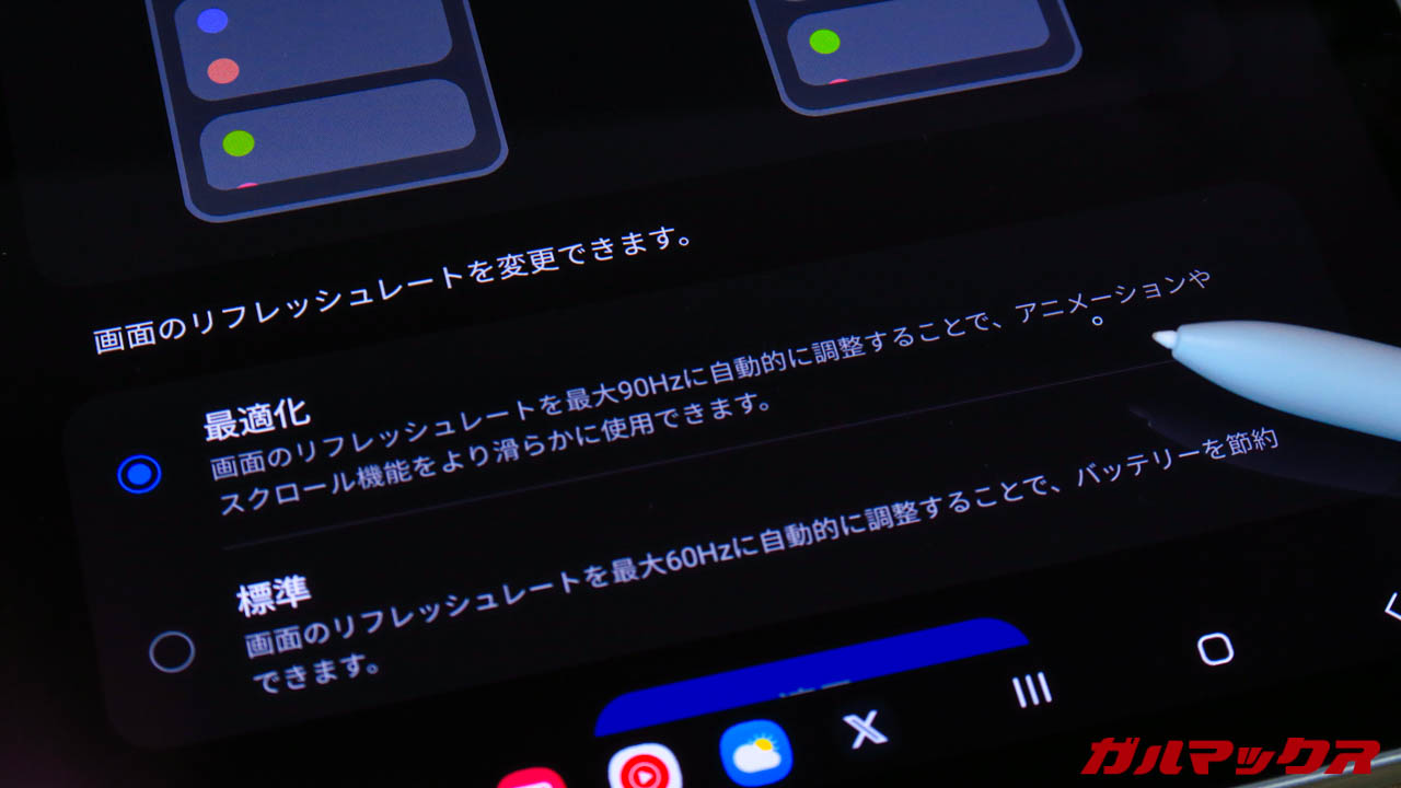 ▼Galaxy Tab A9+でもそうだったんだけど、やっぱOne UIめっちゃ良い。あと個人的にはタスクバーが使えるってのもデカいっす。自分のよく使うアプリとか気に入ってるアプリを下部においておけばすぐ起動できるのが良いんすよ。↓