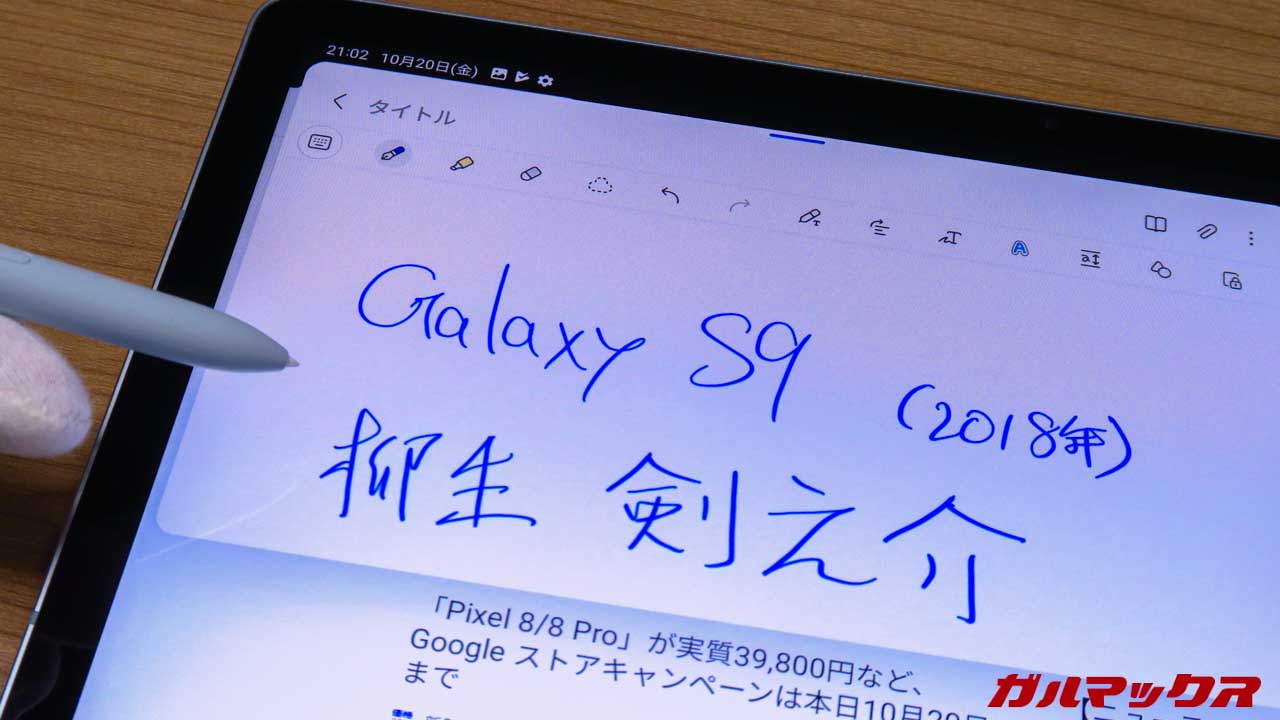 ▼書き心地も非常になめらか。上位版のGalaxy Tab S9たちと遜色ないレベルです(あちらは展示機で軽く触った程度ですが)。↓